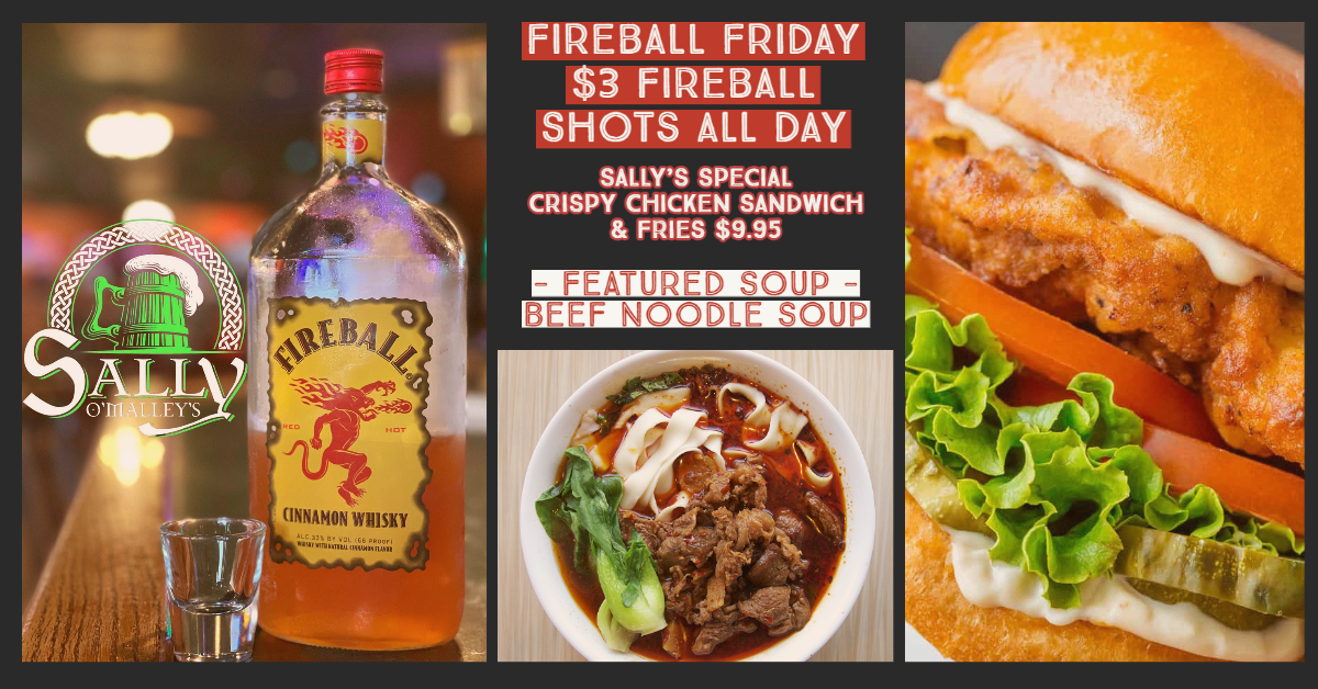 Check out Sally O'Malley's updated Daily Specials! Monday - Grilled Ham & Cheese Sandwich with Sally’s Chips Tuesday - Chicken Marinara Sandwich with French Fries Wednesday - Buffalo Wing Basket with French Fries Thursday - Fajita Chicken Wrap with Cheesy Chicken Tortilla Soup Friday - Bacon Chipotle Burger with Waffle Fries Treat yourself to these delicious deals throughout the week! Mark your calendars and join us for a week full of flavor and delight!!